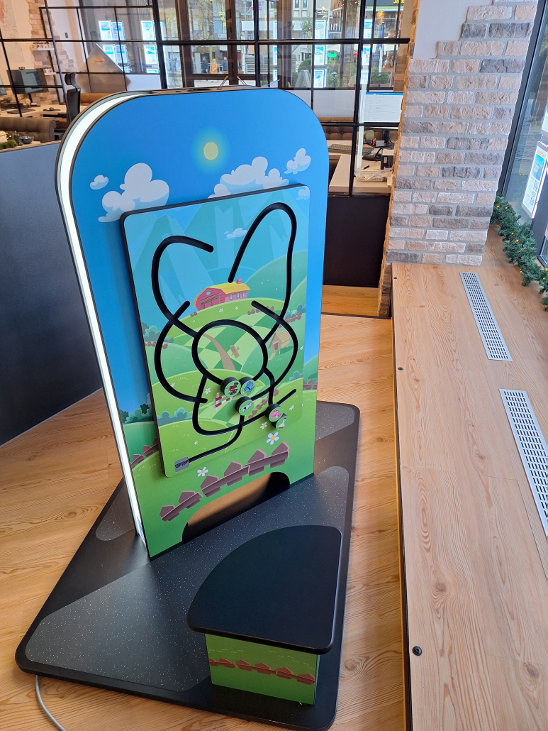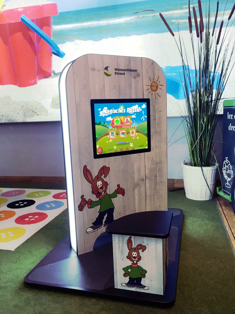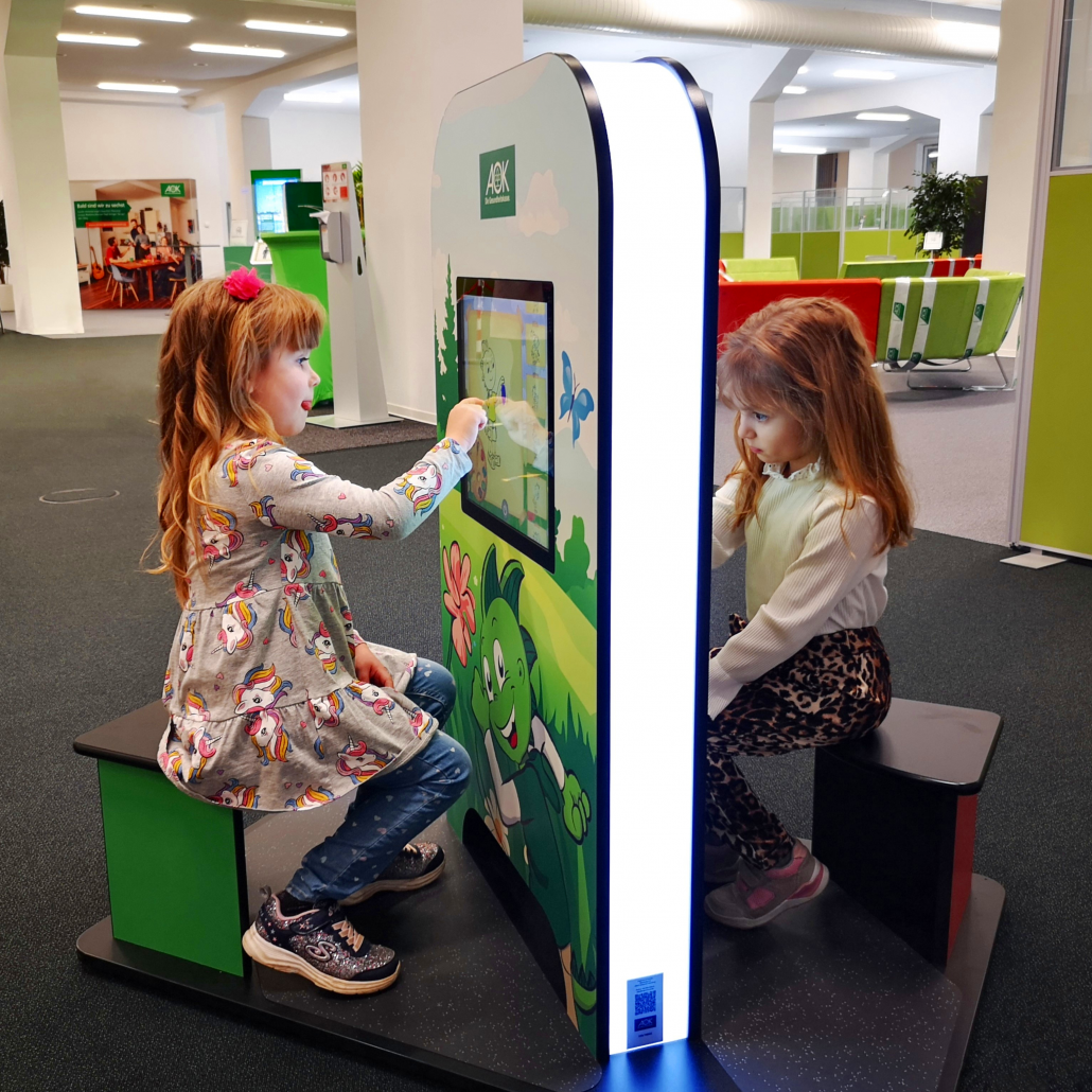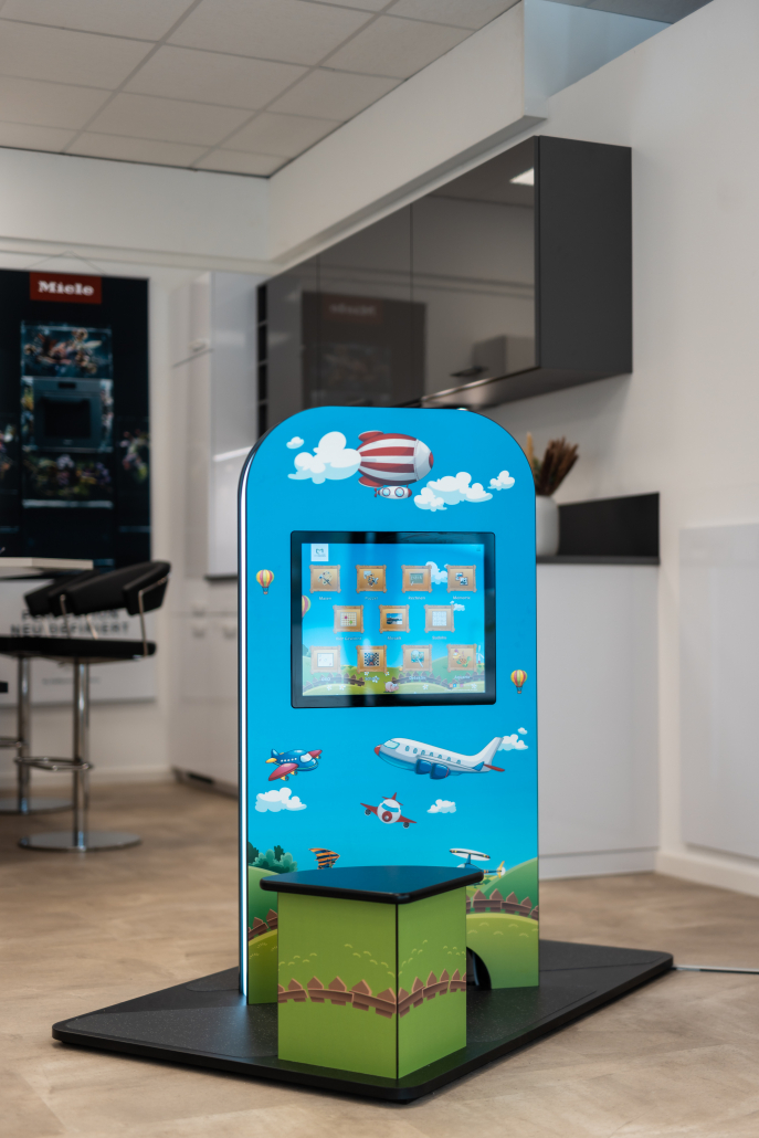 Unsere MyKidsCorner deluxe/superior hat eine Stellfläche von 78 x 118 cm und hat eine Höhe von 120 cm. Das Spielsystem wird frei im Raum aufgestellt und sorgt mit seinen 2 Sitzplätzen für viel Unterhaltung. Bei der Variante deluxe spielen die Kinder an einem großen Touchscreen und einem MooBoo Motorikboard während die Variante superior auf beiden Seiten einen Touchscreen hat.